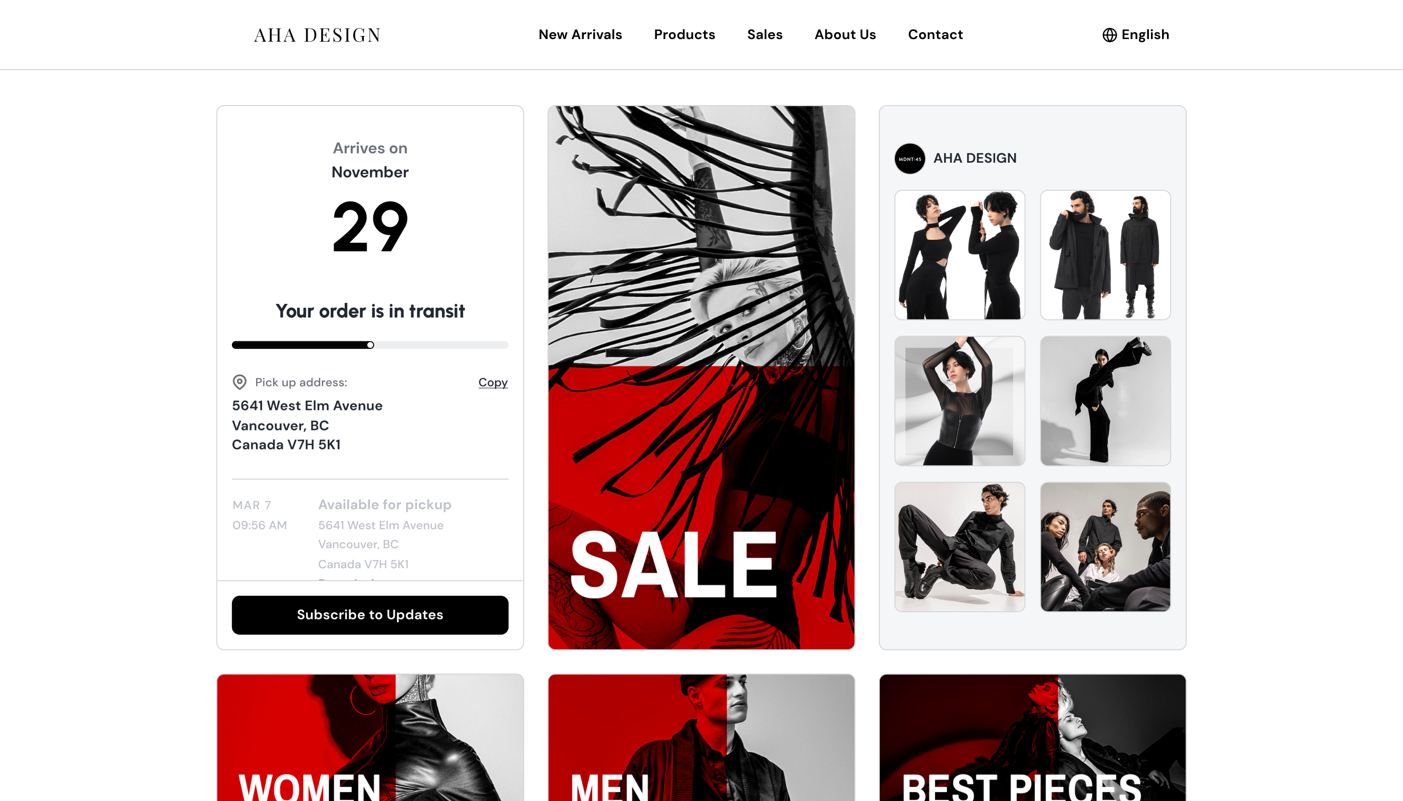 Brand tracking pages and notifications with customizable templates to strengthen brand recognition and loyalty. Integrate your SFCC store's navigation and add multi-language support to create a consistent and seamless purchase journey.