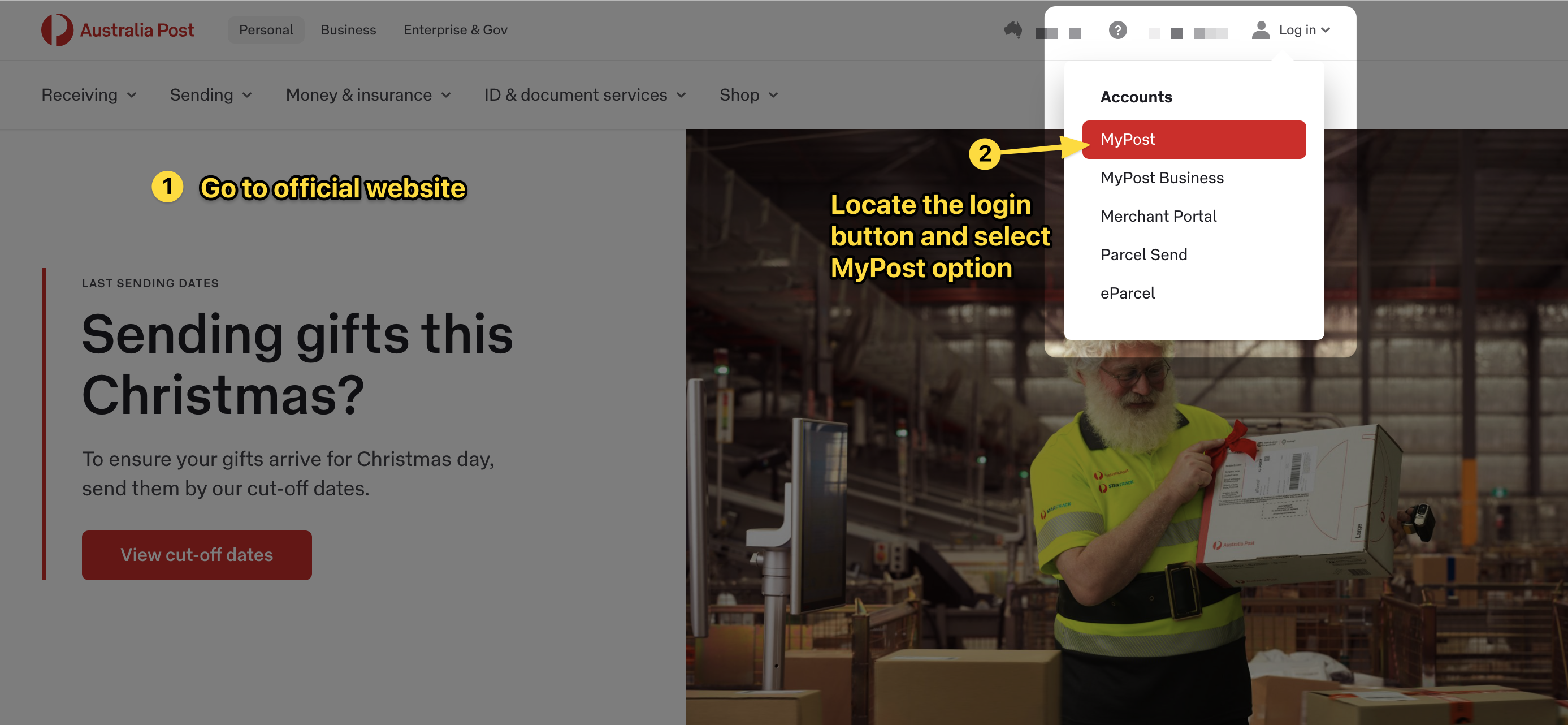 - 访问您的澳大利亚邮政账户: 首先,访问官方网站https://auspost.com.au。进入主页后,请查找位于页面右上角的登录选项。通过单击登录选项,您将能够安全地访问您的帐户并受益于澳大利亚邮政提供的各种功能。