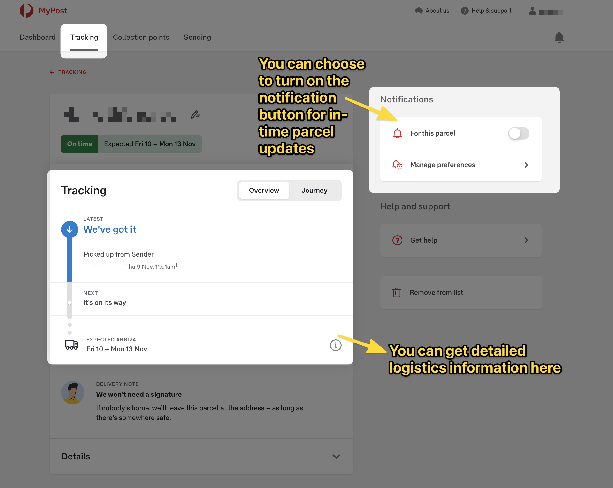 - 或者,访问澳大利亚邮政官方网站或使用其MyPost帐户了解详细信息跟踪和通知。